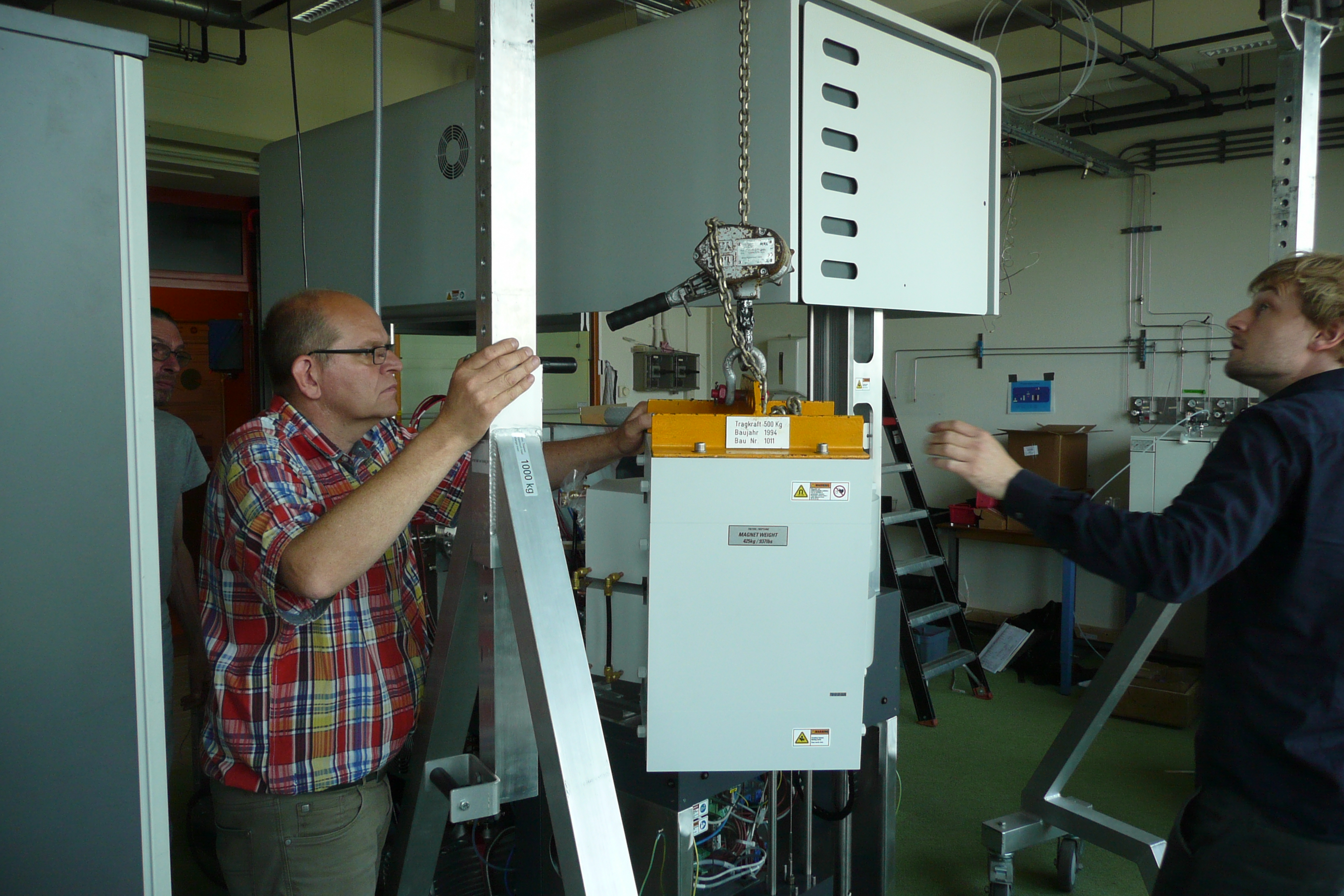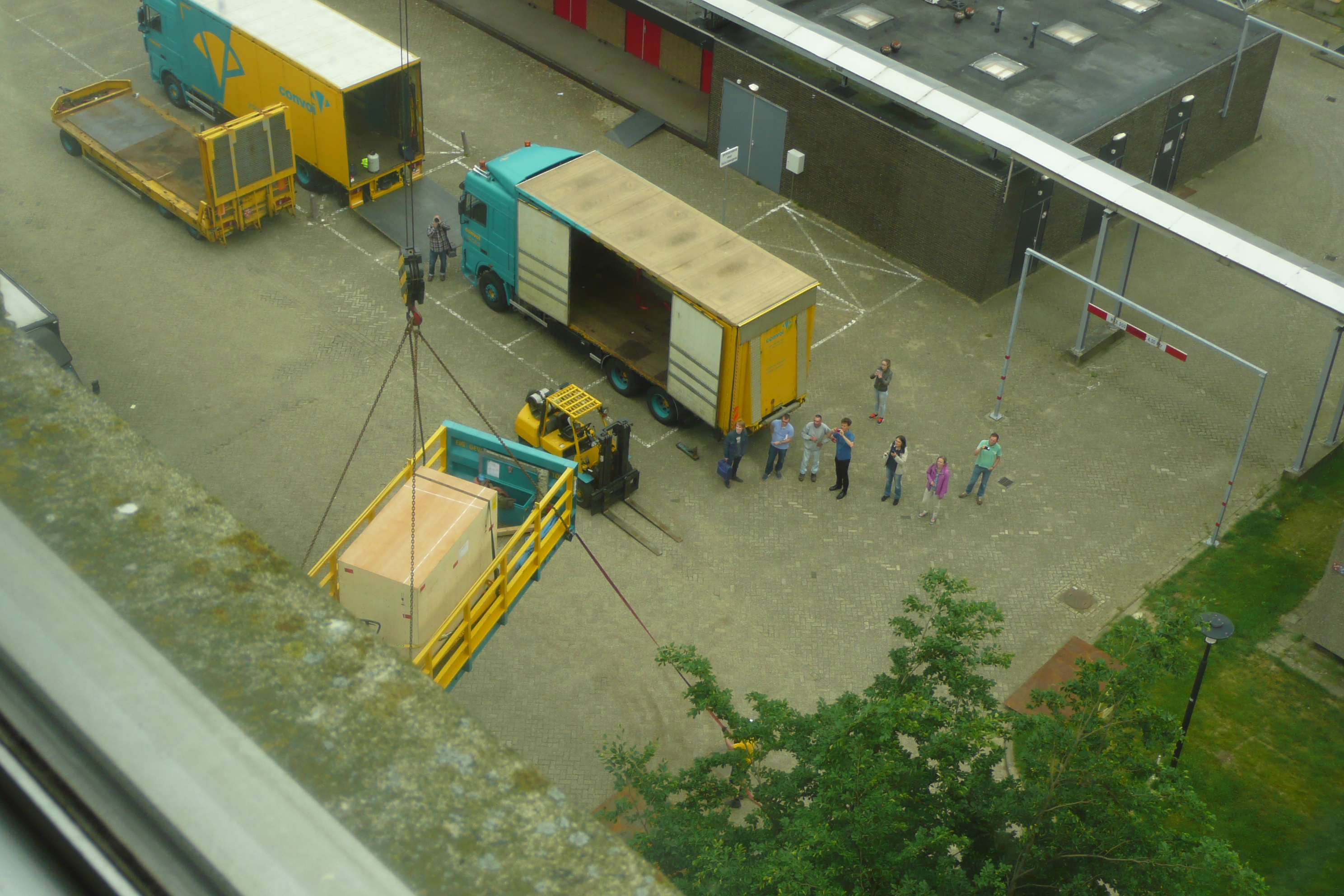 Being raised by a crane to the sixth floor and entering through a window, the new isotope mass spectrometer Mat Ultra made a spectacular first appearance at the Uithof. This new addition to our labs was developed in California and it is only the third instrument worldwide to be installed and set up ready for use.