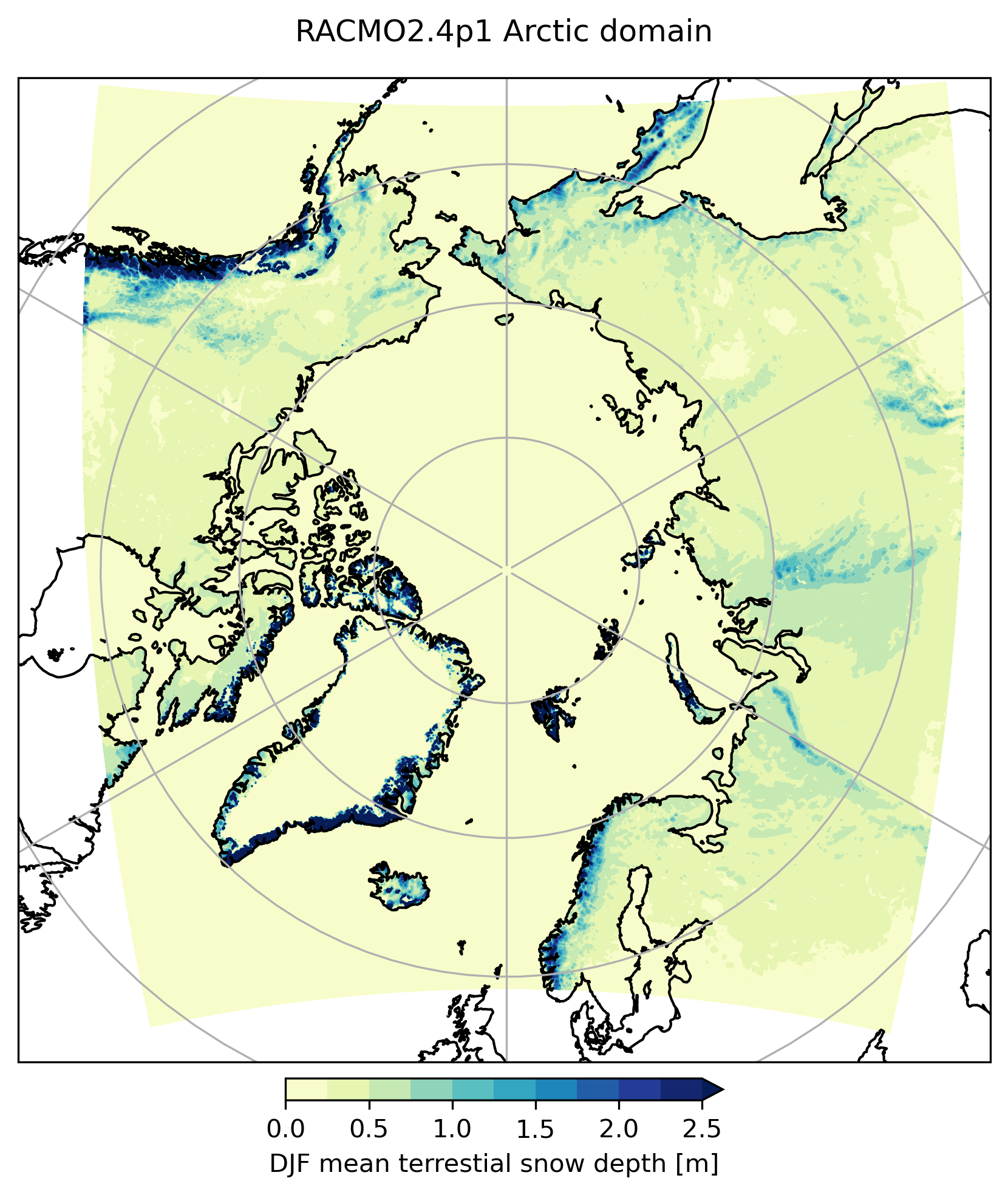 The latest RACMO version (RACMO2.4p1) has updates embedded in the physics parameterizations from ECMWF cycle 47r1, such as improvements of cloud and precipitation physics and inclusion of the ecRad radiation scheme. Next to the updates by the IFS cycle, there is now a fractional ice cover in which part of the grid cells are ice covered and other parts can be land. The narrowband albedo model Tartes is included since the non-operational RACMO2.3p3, which explicity resolves radiation penetration and subsurface heating. An updated and improved snowdrift model is also included. For the first time, RACMO is run on a pan-Arctic domain aligned with the CORDEX standard, allowing simulations not only of the Greenland Ice Sheet but also of other glaciated regions and terrestrial snow across the Arctic.