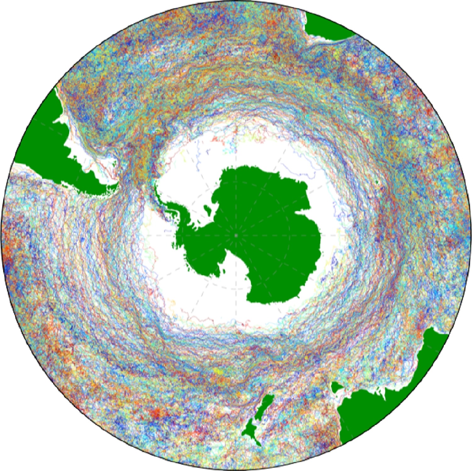 Ocean currents transport water between and within the ocean basins. With this water, they also carry heat, nutrients, microbes and litter around. Understanding of the pathways and timescales on which the ocean currents transport all this material is hence critical for determining the role of the ocean in climate and for the fate of marine litter such as plastics. Work within the Lagrangian Ocean Analysis theme at IMAU is centered around numerical simulations of virtual particles within high-resolution ocean models. These virtual particles are set up to represent plastics, microbes, plankton or nutrients. Their pathways are analysed on scales ranging from 10s of kilometers to global. In addition to virtual particles in numerical flow fields, the team also extensively uses flow fields derived from satellite observations and drifters deployed in the real ocean.
